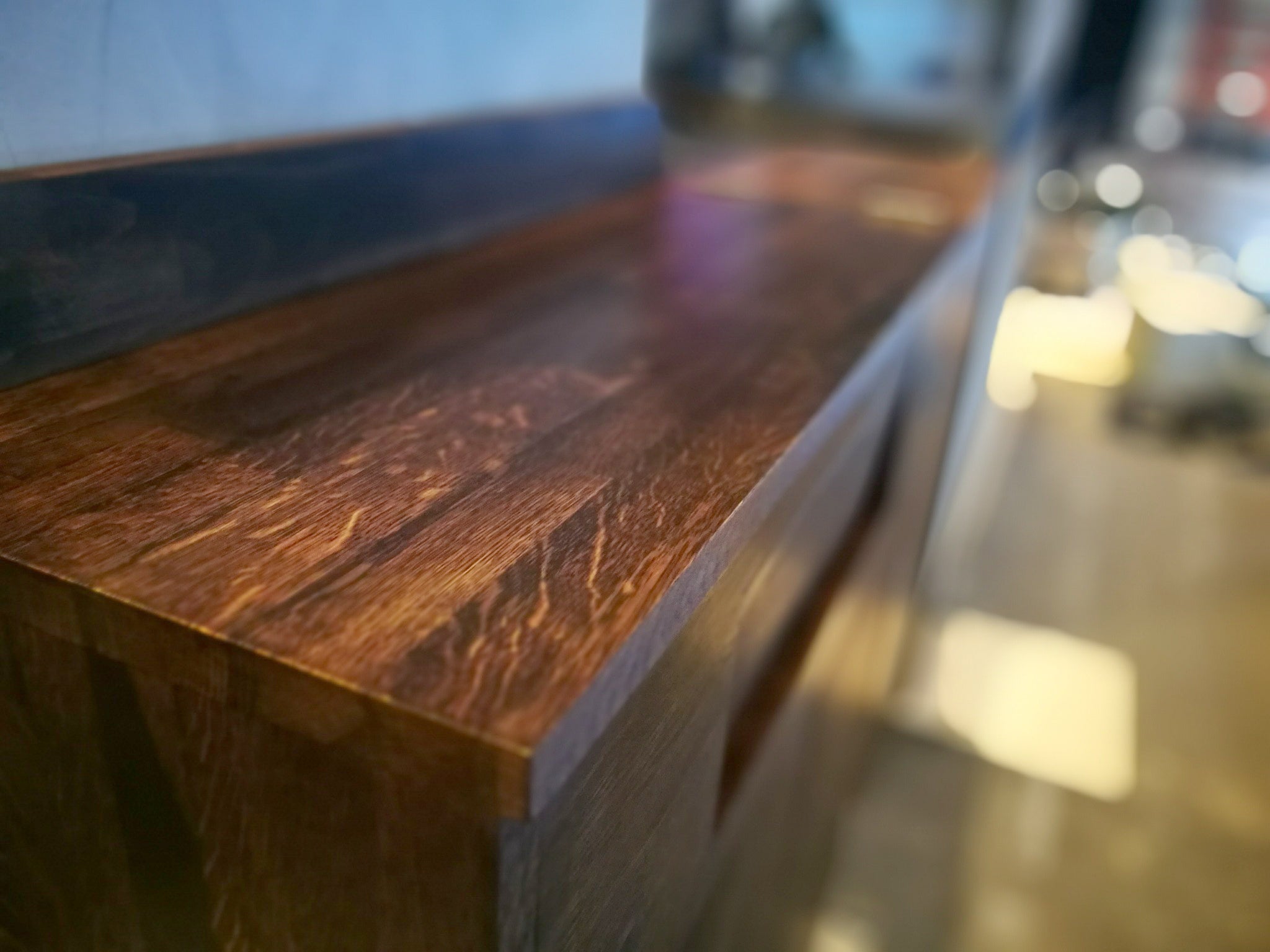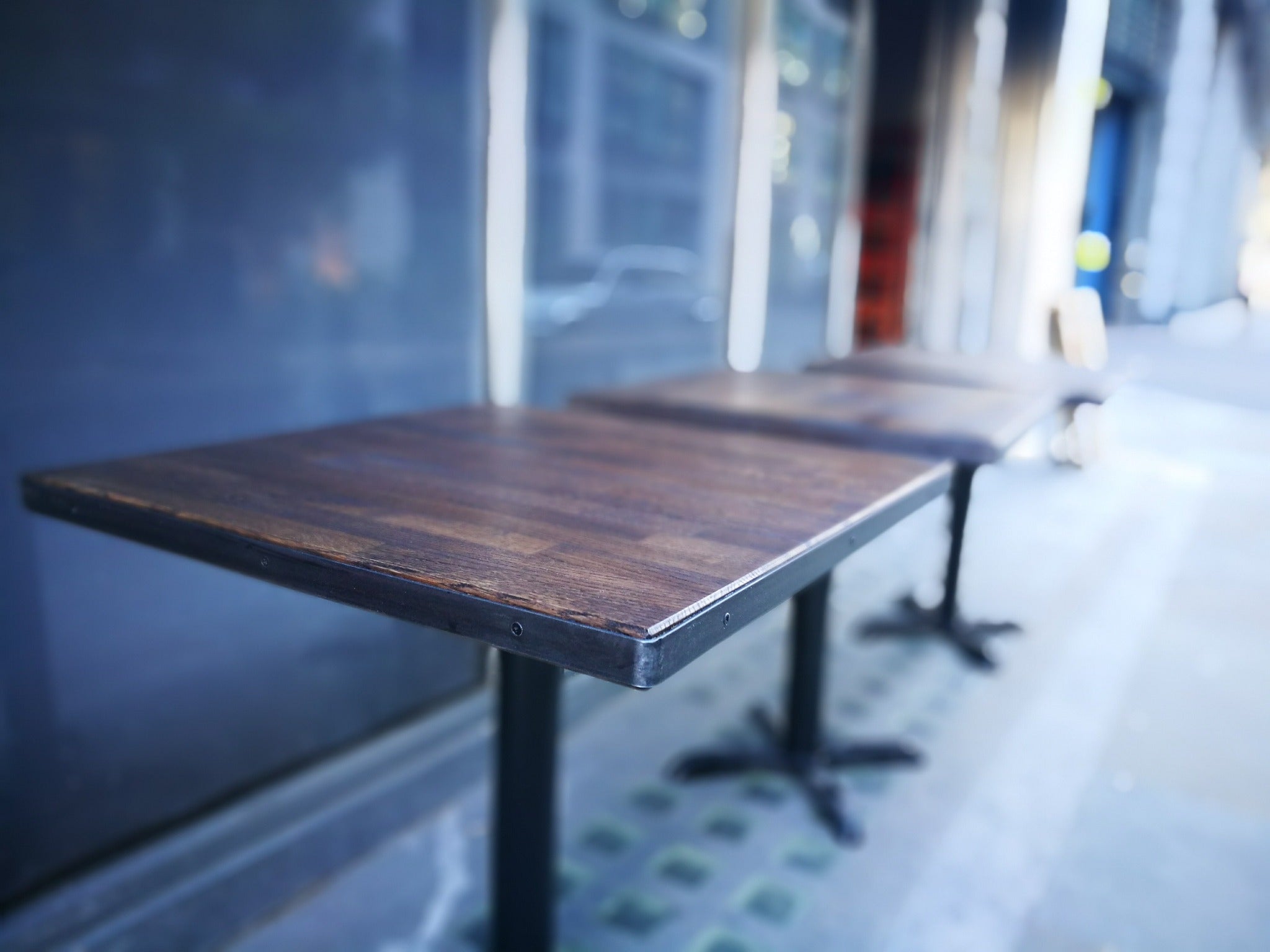 Live Edge were commissioned to create and install the custom-made tables and chairs, bar counter, product display, and exterior view counter. These