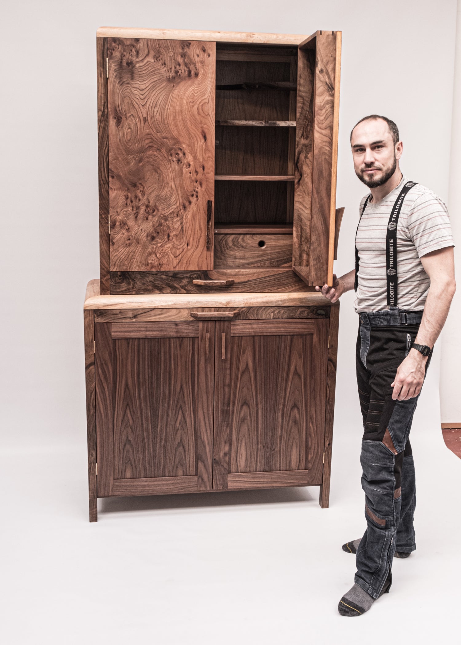 The Tool Cabinet is a functional and stylish storage solution designed by Egor from Live Edge. Crafted from high-quality wood, the cabinet features a series of drawers and compartments that are sleek and modern. The careful attention to detail and craftsmanship makes the Tool Cabinet a durable and practical piece that resides at the workshop.